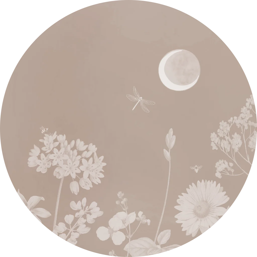 Behangcirkel 120cm wilde bloemen bijtjes libelle maan beige