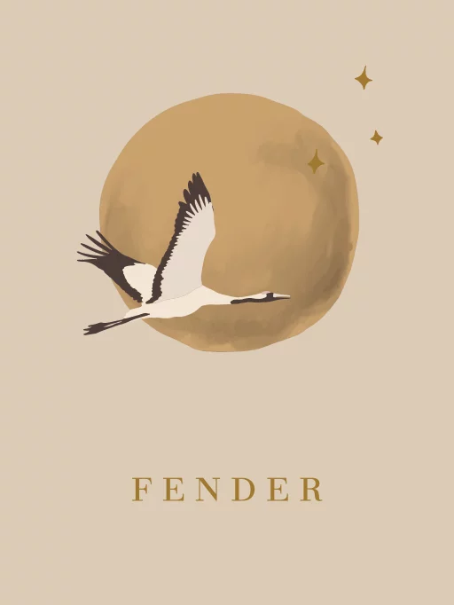 Mooie canvasposter inclusief houten latjes met een vliegende kraanvogel voor een volle maan met sterren. Pas de poster geheel aan naar wens.