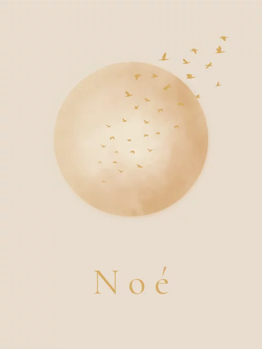 Mooie minimalistische canvasposter met een grote zon en vliegende vogels voor de zon. De poster kan naar wens aangepast worden.