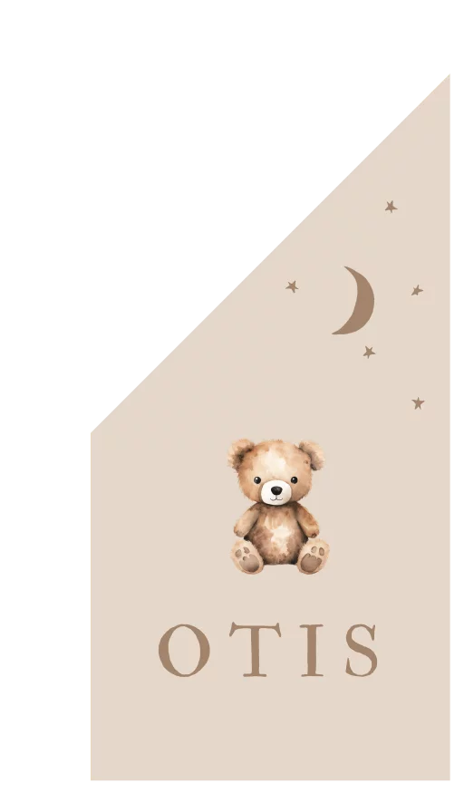 Geboortevlag aankondiging geboorte kioskvlag knuffelbeer maan beige