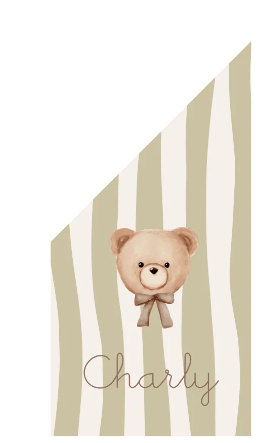 Superleuke geboortevlag met trendy streepjes en een knuffelbeertje met strikje. Pas de kleuren gemakkelijk zelf aan in de editor. Heb je iets aangepast, pas dan BEIDE zijdes aan van de vlag!