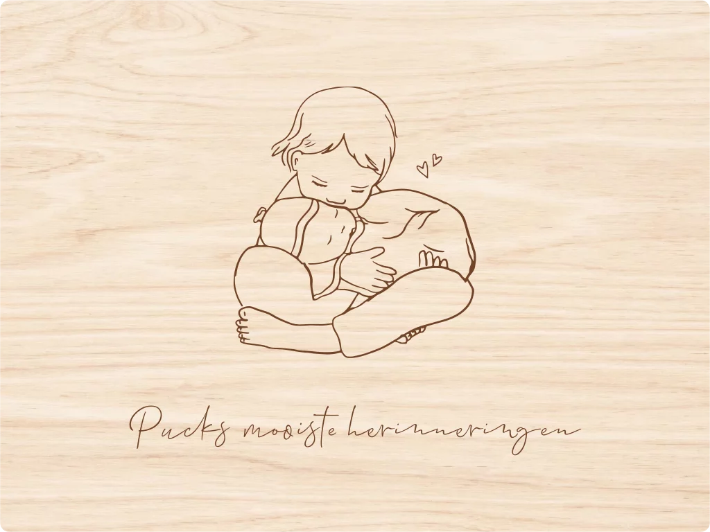 Speciale houten memorybox met een lijntekening van een grote broer of zus met zusje/broertje. Pas zelf de lijntekening aan in de handige editor! Hbe je vragen of kom je er niet uit? Stuur een berichtje en wij helpen je graag!