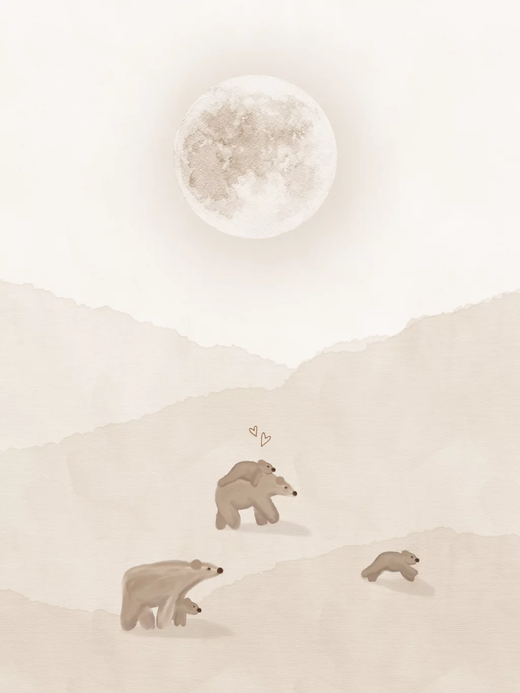 Babykamer poster aquarel berenfamilie bergen volle maan 60x80cm