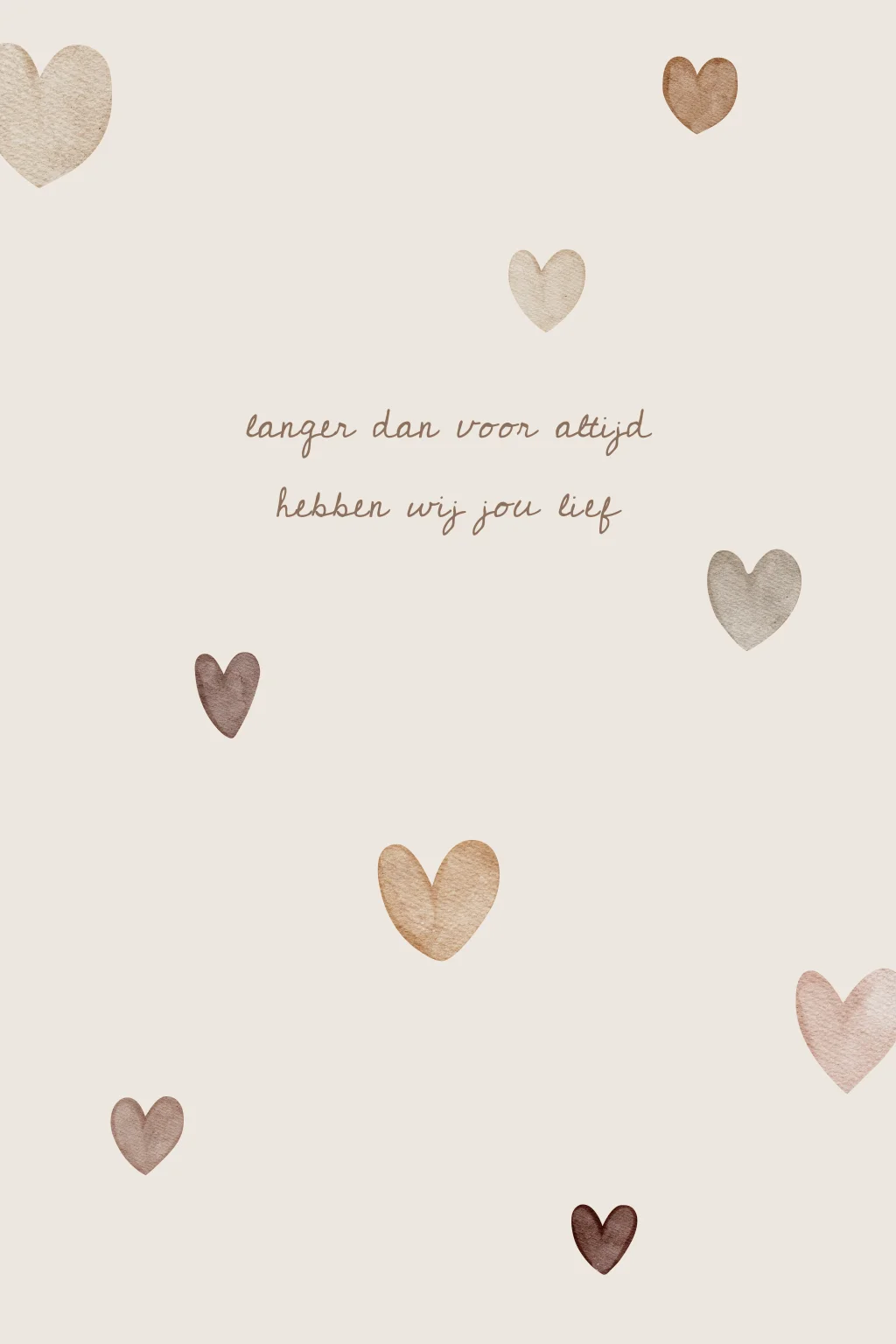Lieve poster (40x60cm) met gedichtje met aquarel hartjes. Pas de achtergrondkleuren en gedichtje gemakkelijk zelf aan in de handige editor. Liever een ander formaat of heb je hulp nodig? Wij helpen je graag!