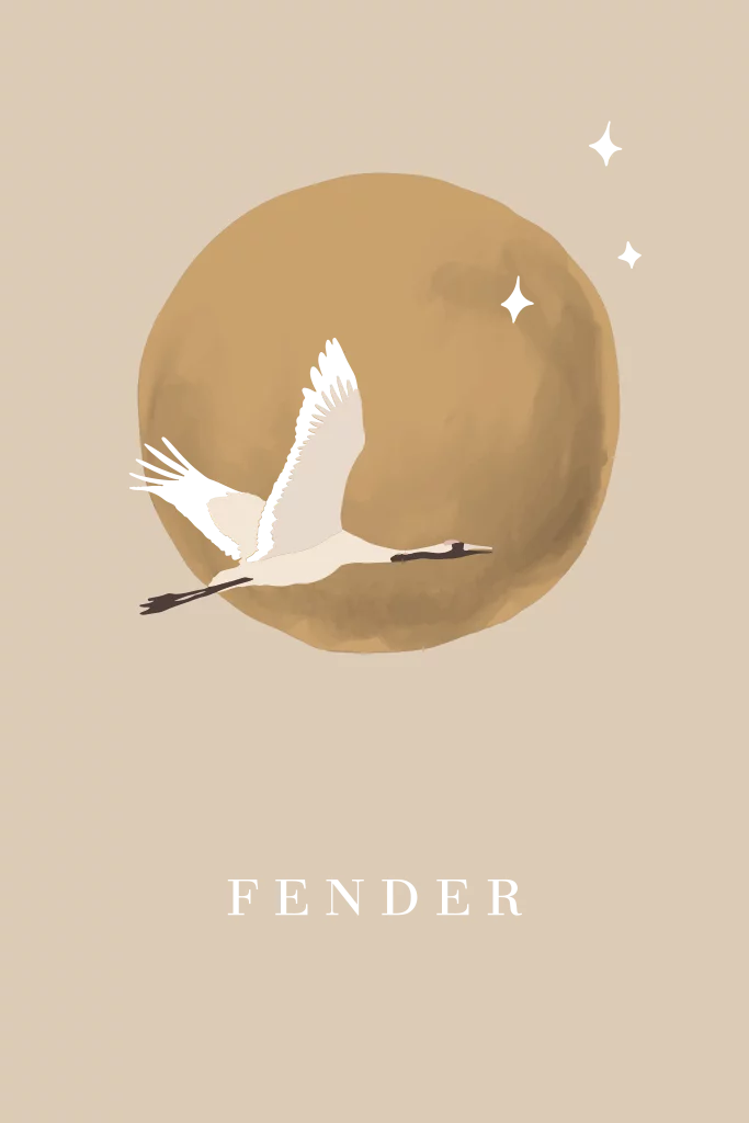 Luxe poster babykamer met een prachtige kraanvogel voor de volle maan, de vleugels van de vogel worden gedrukt in goudfolie voor dat extra wouw-effect. Deze poster is 20x30cm en wordt gedrukt op coated karton 240 gram met folie.