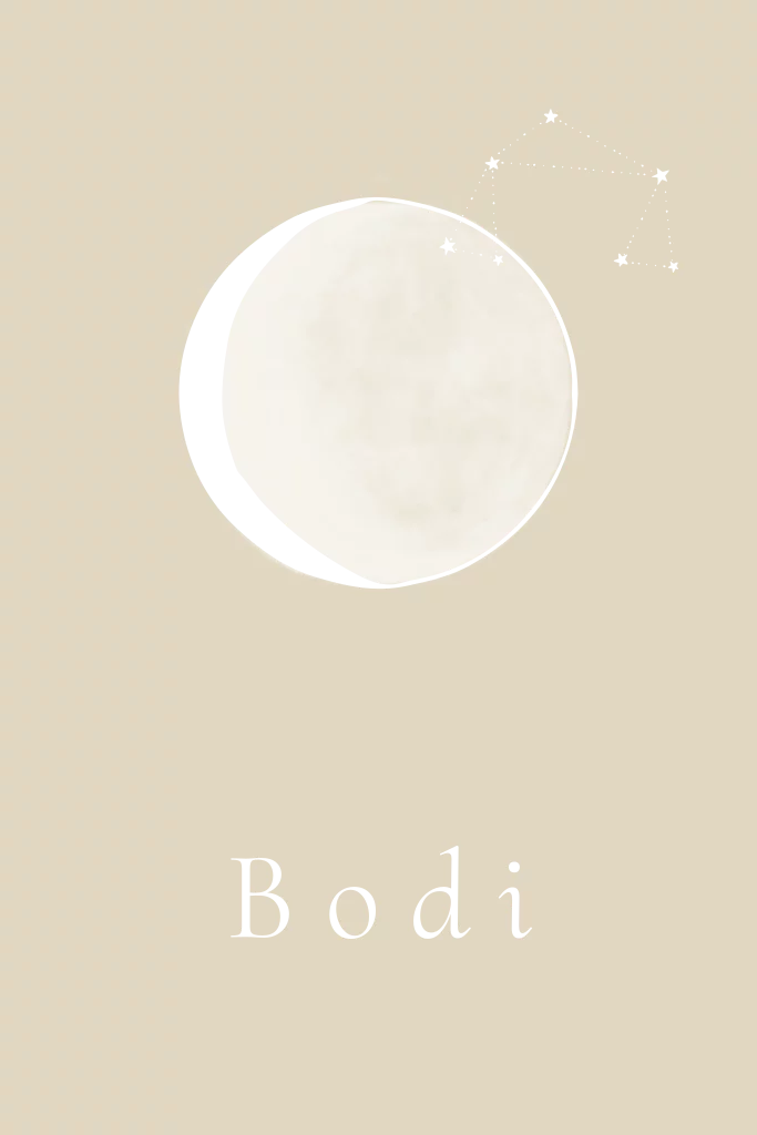 Luxe poster babykamer met maanstand sterrenbeeld weegschaal in goudfolie Pas de maanstand en sterrenbeeld gemakkelijk aan in de editor!