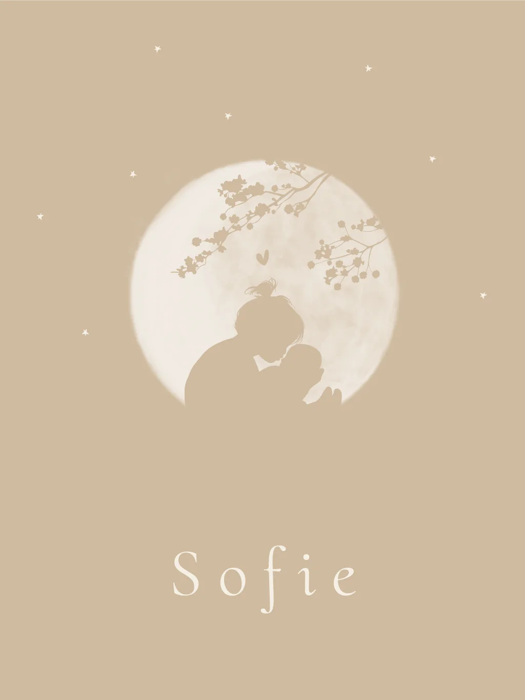 Lief geboortekaartje met maan en bloemen, pas de kaart naar wens aan in onze editor. Liever een ander formaat? Stuur ons een berichtje met jouw wensen!