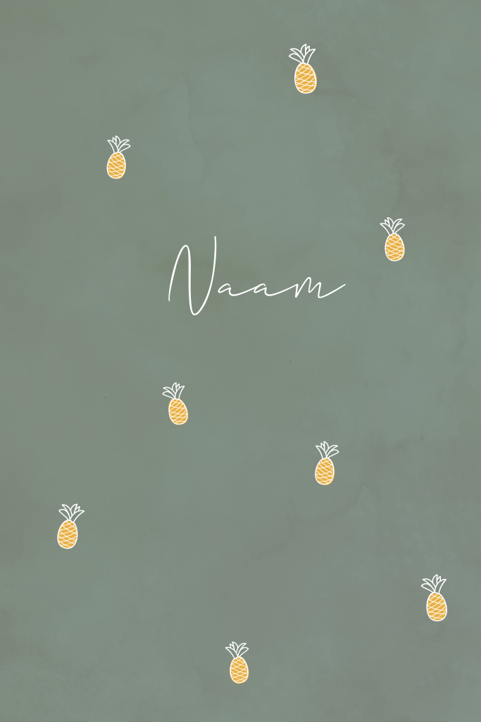 Deze poster is supergaaf op de babykamer (of kinderkamer). De babynaam en ananassen worden gedrukt in goudfolie.