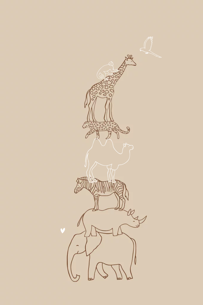 Poster met gestapelde afrikaanse dieren in beige