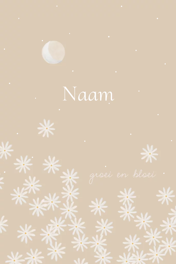 Poster met witte madeliefjes met maan en sterren