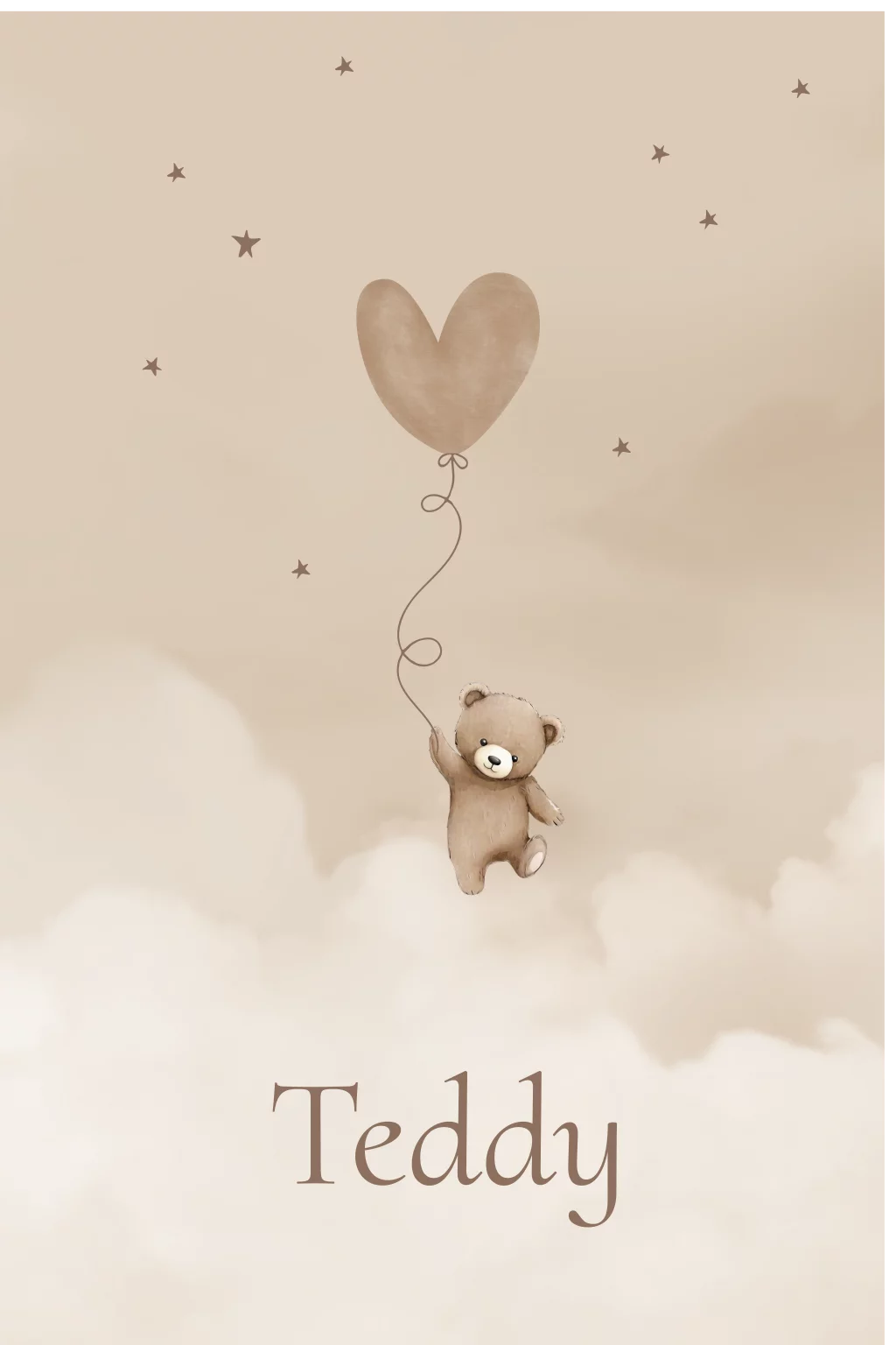 Raambord 40x60cm dubbel hartjesballon knuffelbeertje teddy wolken