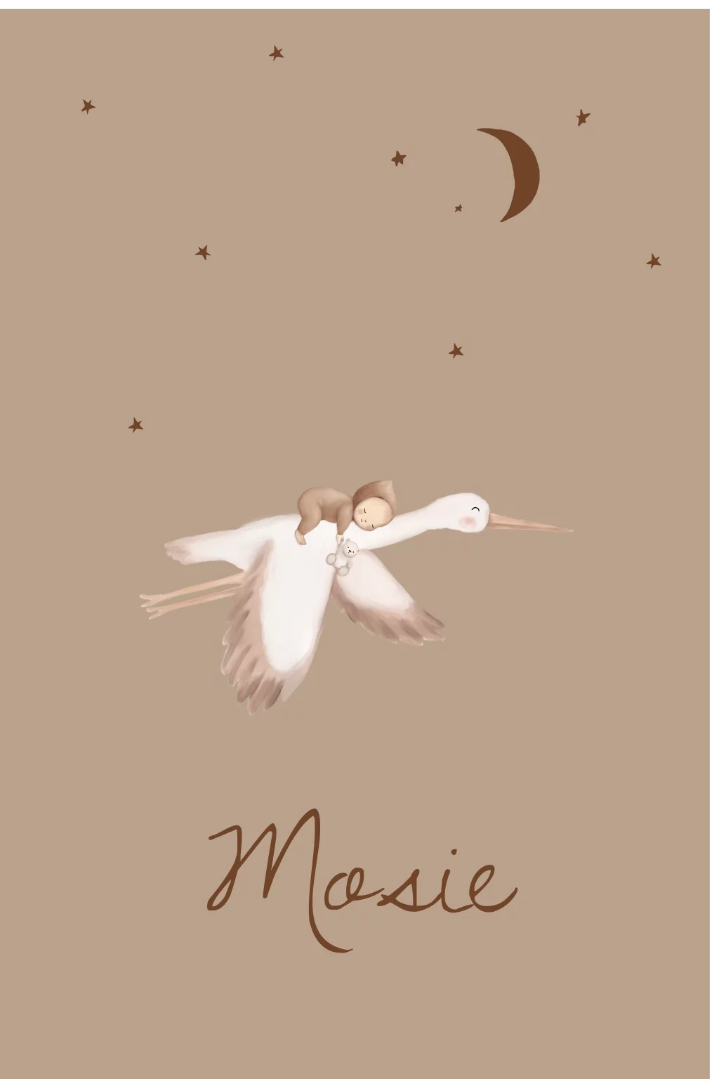 Laat de hele buurt weten dat jullie kindje is geboren met dit leuke raambord met ooievaar en kindje op zijn rug. Pas de kleuren gemakkelijk aan in de handige editor!
