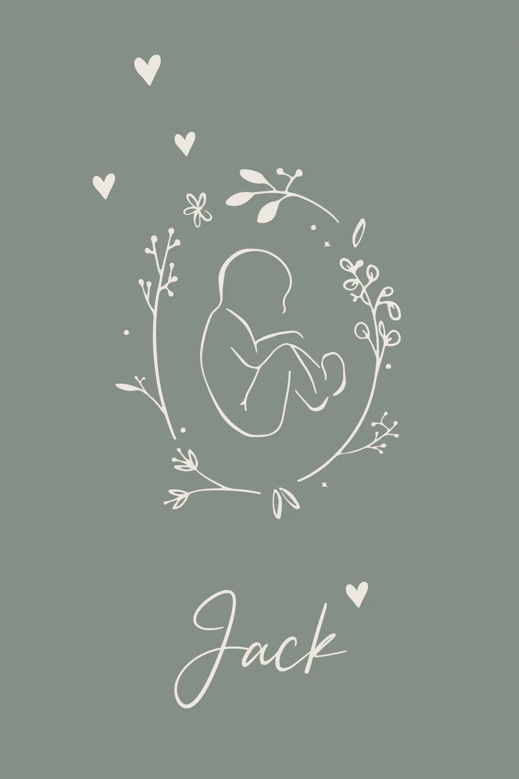 Een raamsticker voor de geboorteaankondiging van jullie kindje op het raam met een lieve handgetekende lijntekening van een baby met bloemetjes en hartjes. Pas de sticker aan naar de naam van jouw kindje en kleuren van de babykamer. Heb je hulp nodig of wil je een ander ontwerp bijpassend aan het geboortekaartje? Wij helpen je graag!
