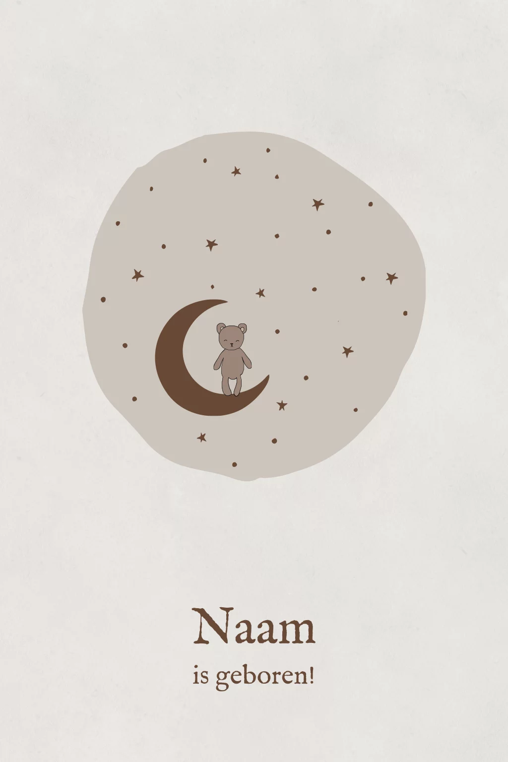 Laat aan de buurt zien dat je kindje geboren is met deze mooie raamsticker van een knuffelbeertje op de maan. Het ontwerp kun je eenvoudig bewerken.