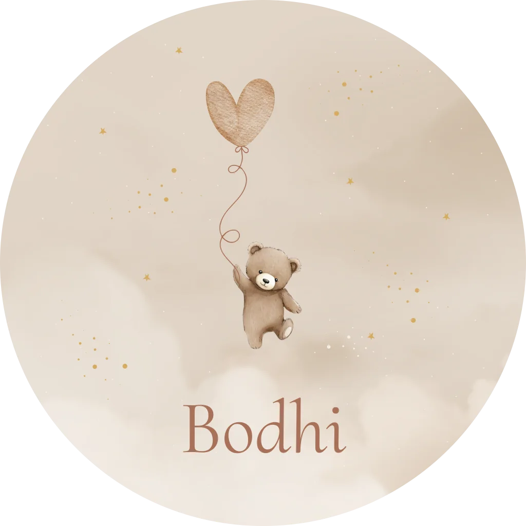 Laat de buurt weten dat je/jullie kindje is geboren met deze mooie ronde raamsticker met knuffelbeertje en hartjesballon in de wolken. Deze raamsticker is 60cm - wil je dit op een ander formaat, laat het ons dan weten!