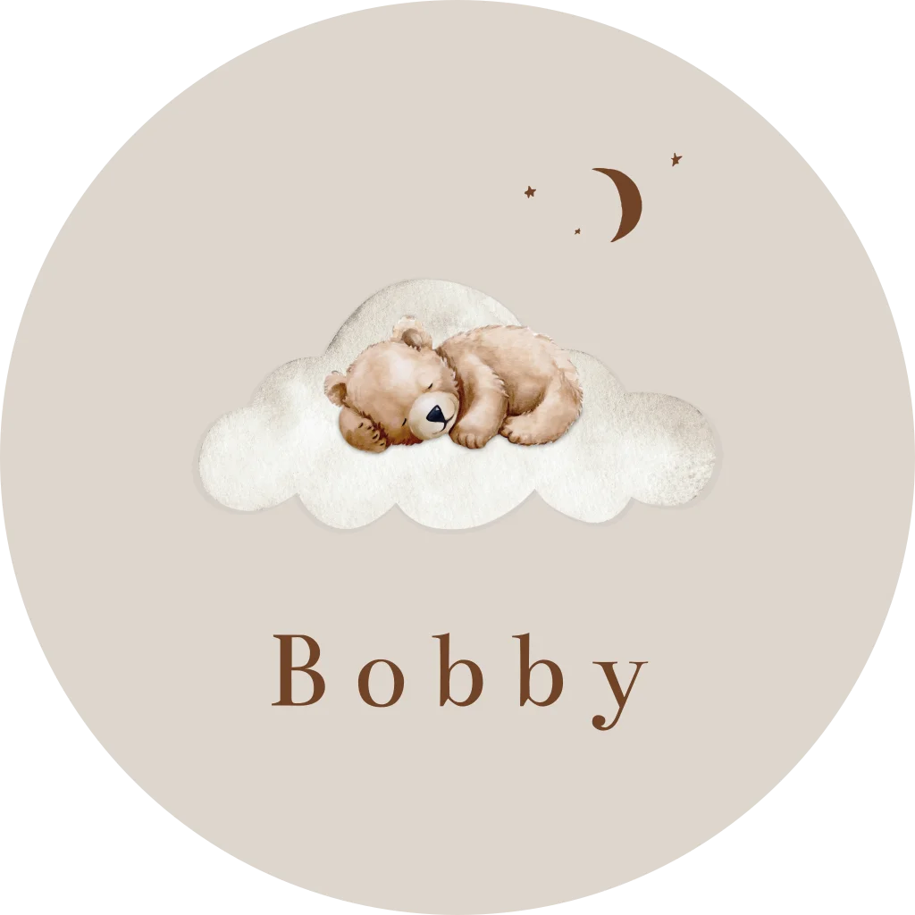 Raamsticker rond baby geboren knufelbeer slapend wolkje