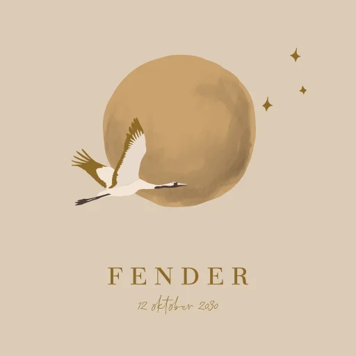 Geboortetegel keramiek 15x15cm kraanvogel vliegend volle maan