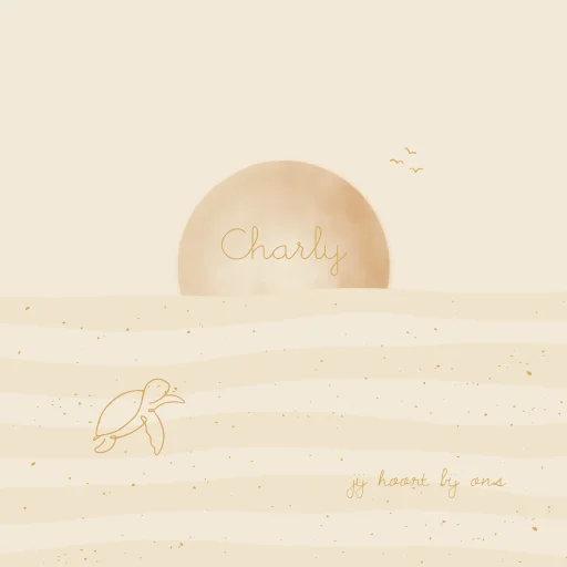 Lief geboortetegeltje met zeethema. Pas de naam, kleuren en /of achtergrond gemakkelijk aan in de editor. Kom je er niet uit of heb je vragen - wij helpen je graag!