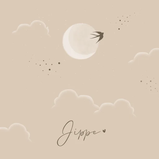 Geboortetegeltje keramiek maan wolken beige zwaluw vliegend