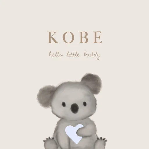 Lief geboortetegeltje met een knuffelkoala en hartje in zijn hand. Pas de kleuren, naam allemaal naar wens aan in de handige online editor! Hulp nodig met opmaken of wil je dit tegeltje precies zo als je geboortekaartje? Dat kan, stuur ons vrijblijvend een berichtje en wij zetten het gratis om voor je in je account.