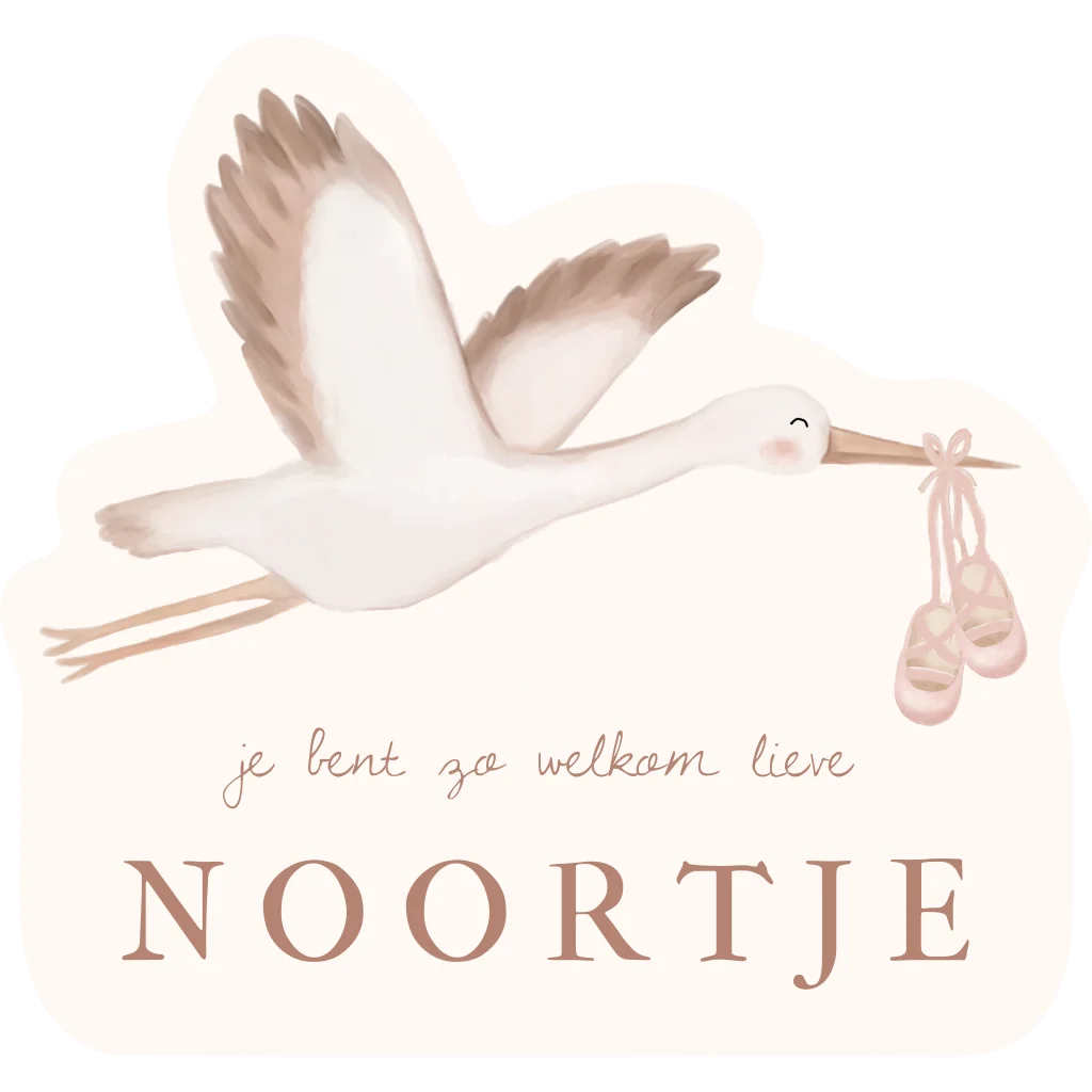 Mooi tuinbord in een bijzondere vorm met een ooievaar met schoentjes in de snavel. Laat de hele buurt weten dat jullie kindje is geboren met dit mooie tuinbord in de tuin. Pas gemakkelijk de achtergrondkleur en tekst aan in de handige editor! Het tuinbord is ongeveer 75x80cm. Bevestig de voorkant van het bord met 2 schroeven (boven en onder) aan een paal voor in de tuin (bij een bouwmarkt te koop).