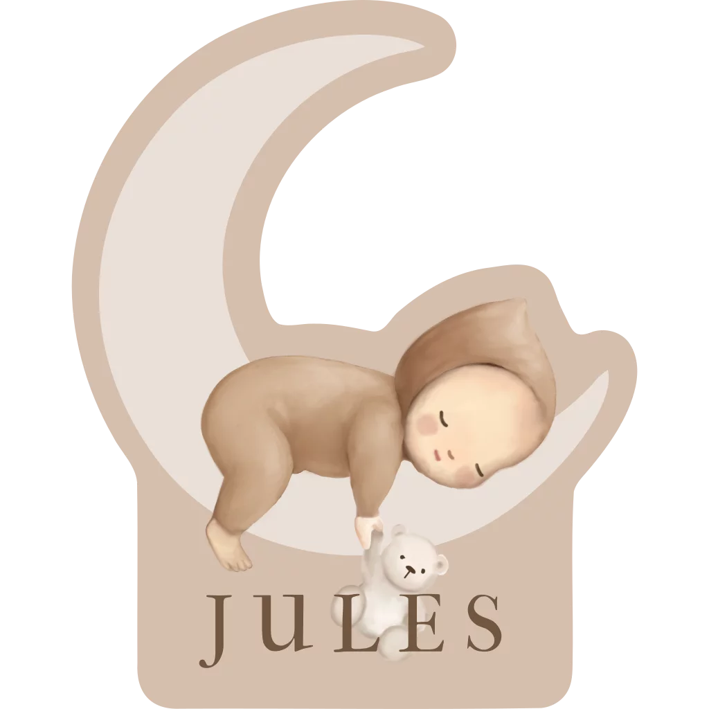 Tuinbord unieke vorm maan baby slapend aquarel zandkleurig