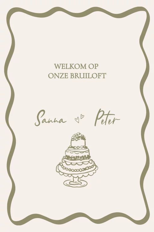 Heet jouw gasten welkom met dit mooie welkomstbord voor je bruiloft! Pas kleuren, gegevens en tekst aan in de handige editor. Heb je hulp nodig of vragen? Wij helpen je graag!