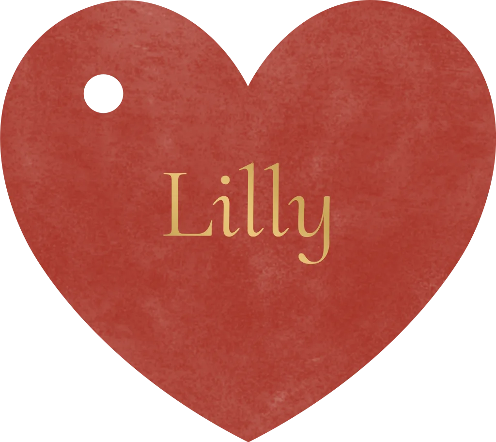 Label hartvorm met gaatje rood mat goudfolie