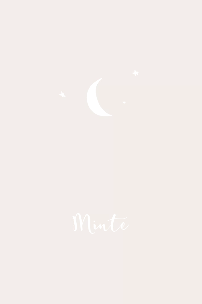 Een minimalistisch geboortekaartje in beige met handgetekend maantje en sterretjes.
