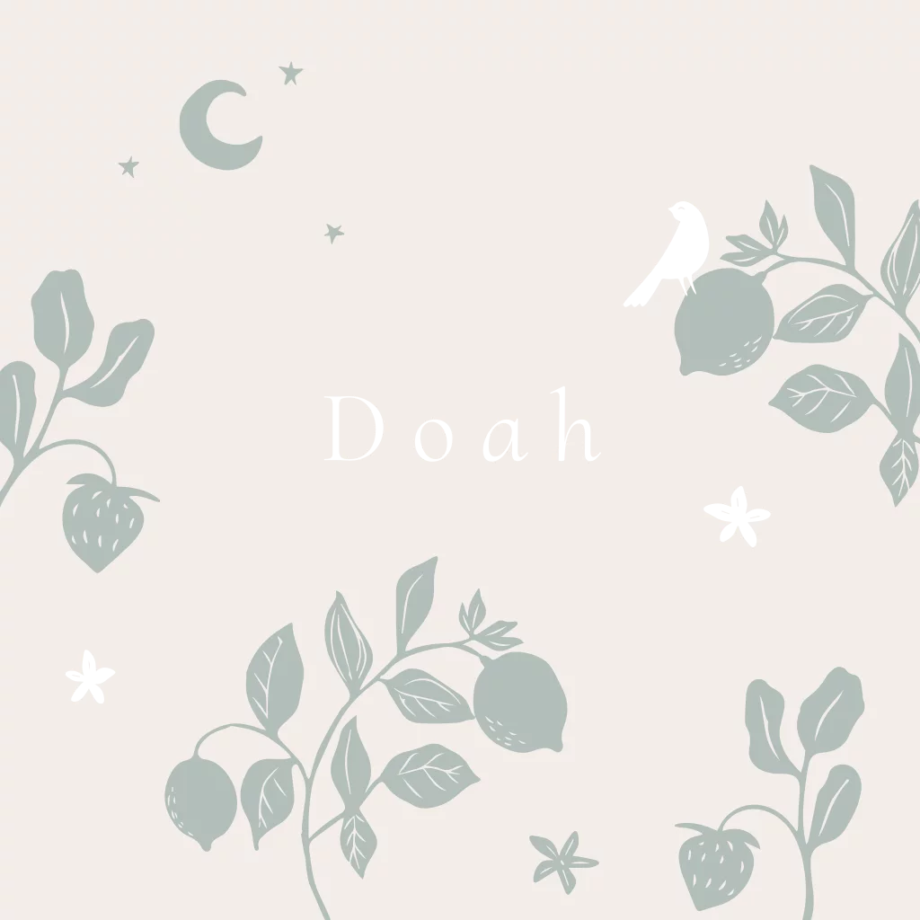 Geboortekaartje met citroenplant, aardbeiplant, vogel en maan