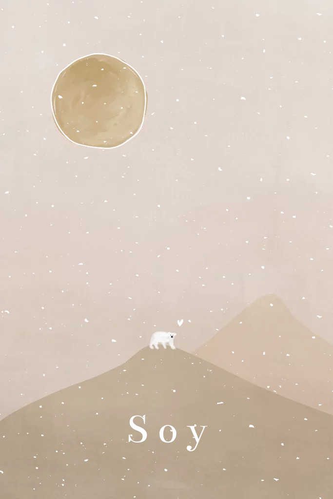 Dromerig geboortekaartje maan baby ijsbeertje winterlandschap