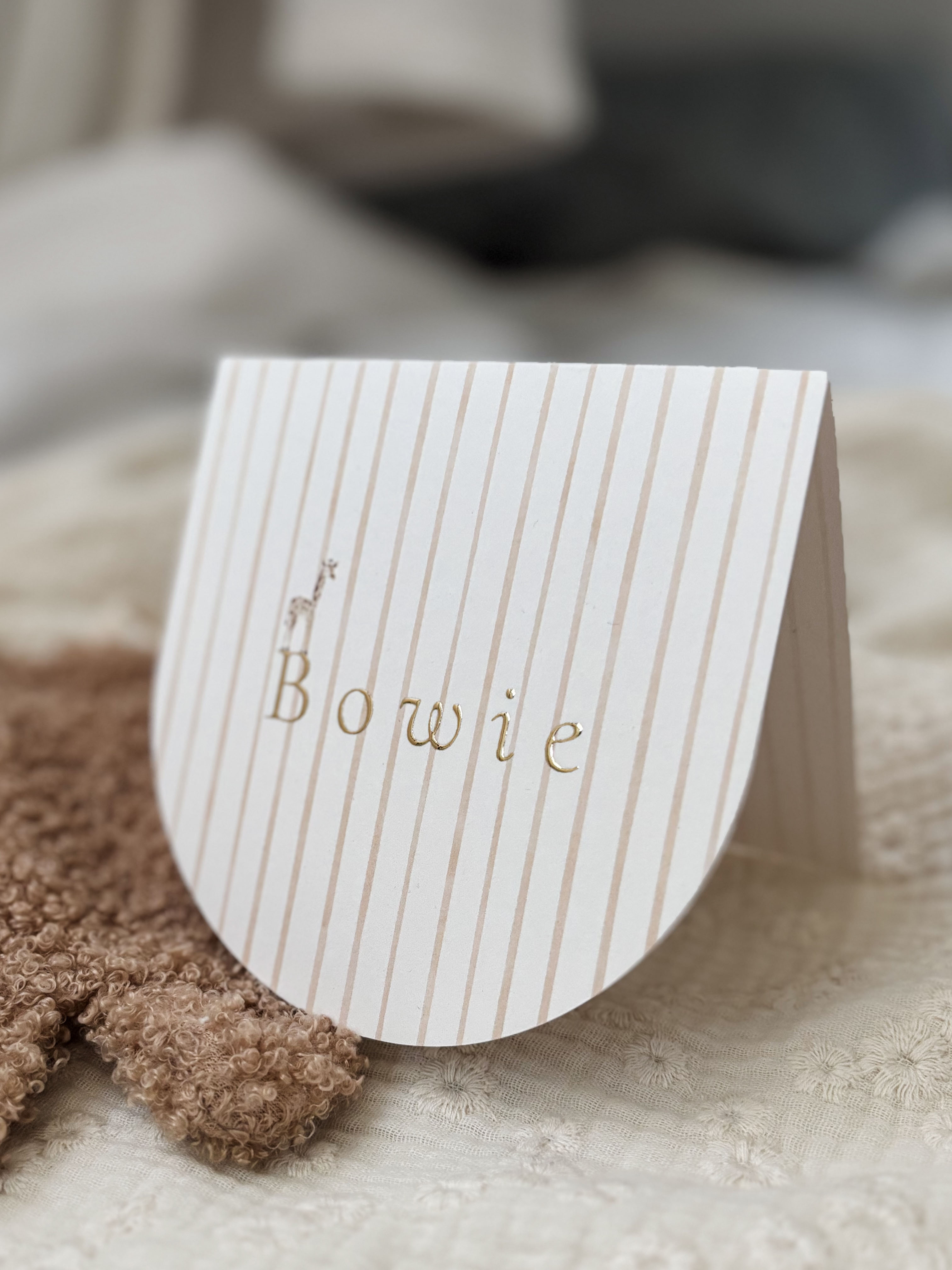 Bijzonder openslaand geboortekaartje waarbij de onderkant een omgekeerde boogvorm heeft. Let op: dit kaartje is opgemaakt op 11cm, wil je een 13cm kaart - stuur dan even een berichtje, dan zetten wij het voor je om!
