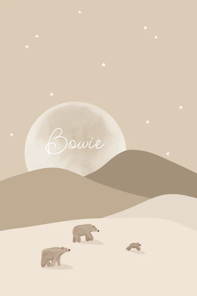 Geboortekaartje bergen landschap maan beren berenfamilie folie