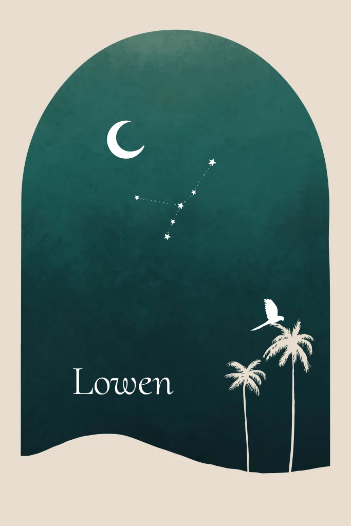 Neutraal geboortekaartje in sierlijke boog met palmbomen en maan