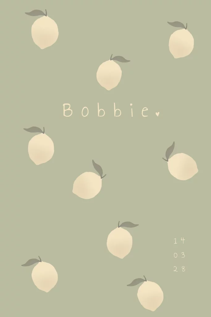 Geboortekaartje met citroentjes fruit in aardetinten beige.
