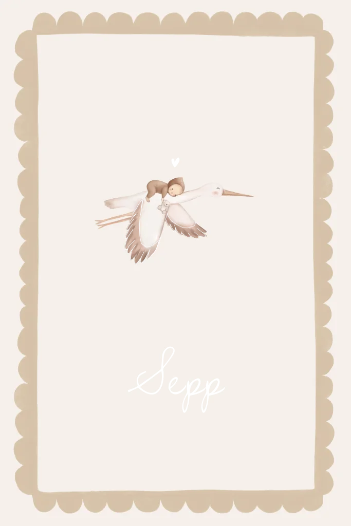 Geboortekaartje met een hip en trendy golfjes patroon aan de rand met een aquarel handgetekende ooievaar met baby op zijn rug. De lijnen van de vleugels van de ooievaar, het hartje en de naam worden gedrukt in folie. Liever een dubbele kaart of een andere vorm kaart of heb je hulp nodig met opmaken? Stuur een berichtje, wij helpen je graag verder!