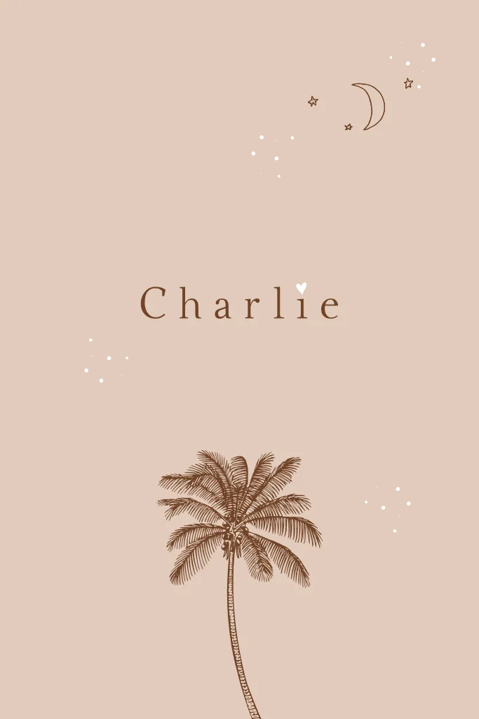 Gaaf zomers geboortekaartje met goudfolie palmboom, maantje en sterretjes in een mooie beige kleur. Pas de kleuren gemakkelijk aan in de editor. Voor hulp staan we altijd voor je klaar!