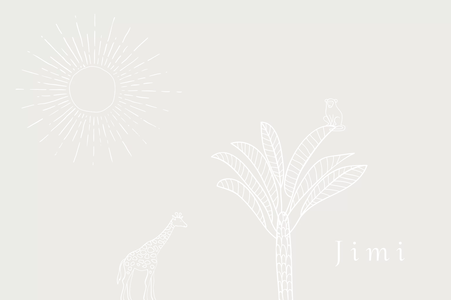 Geboortekaartje in safari thema met een giraf, palmboom en aapje