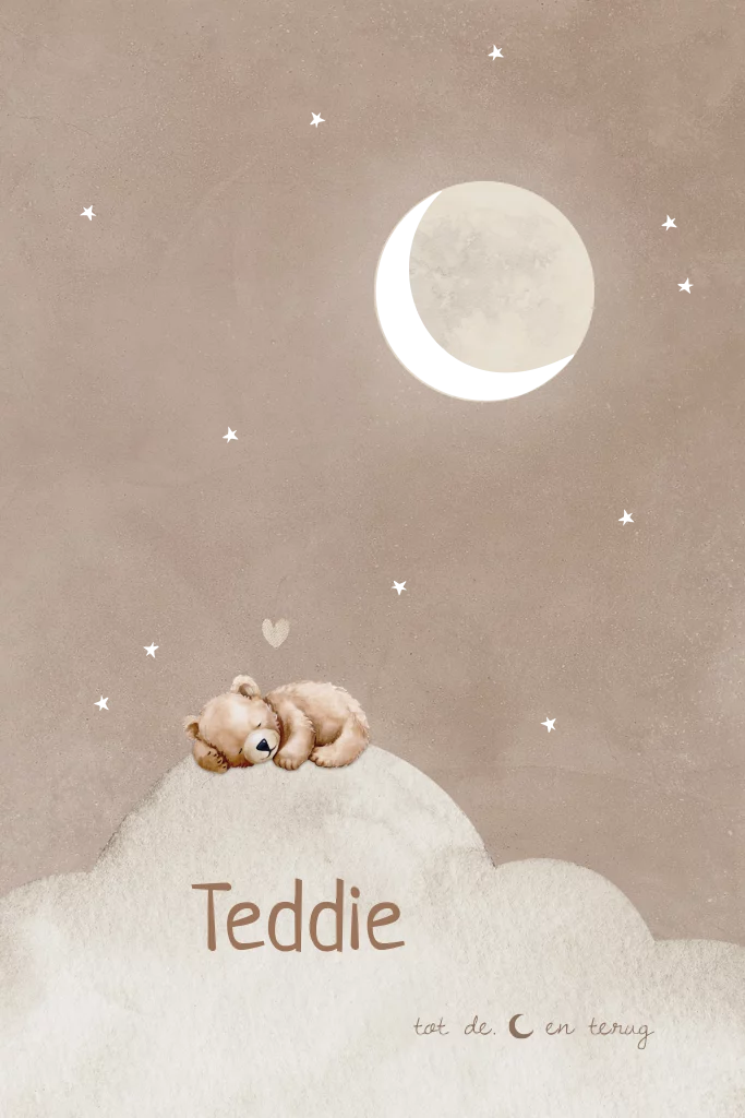 Geboortekaartje knuffelbeer teddybeer wolken maan folie