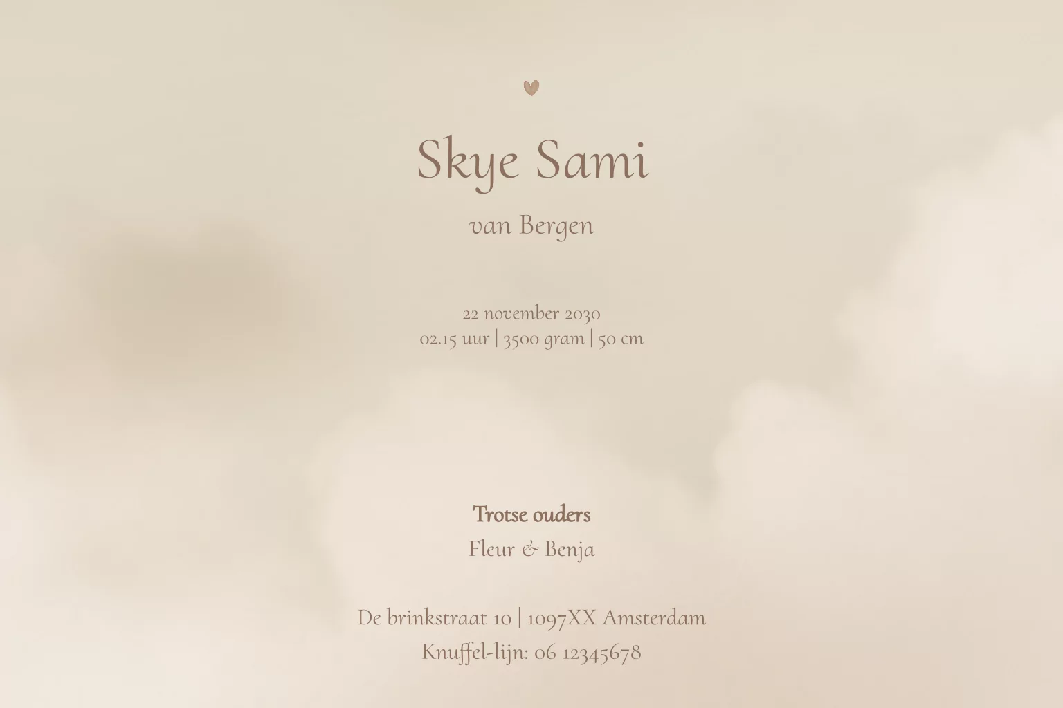 Geboortekaartje liggend maan aquarel ooievaar baby rug folie