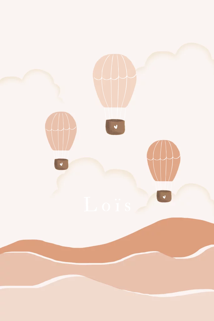 Geboortekaartje luchtballonnen maan landschap rosegoudfolie details
