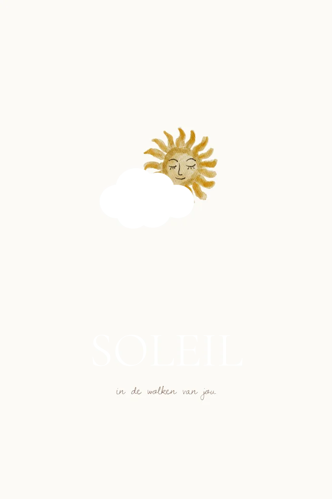 Minimalistisch geboortekaartje met een aquarel handgetekende zon en een wolk in goudfolie. Liever een dubbele kaart of een andere vorm kaart of heb je hulp nodig met opmaken? Stuur een berichtje, wij helpen je graag verder!