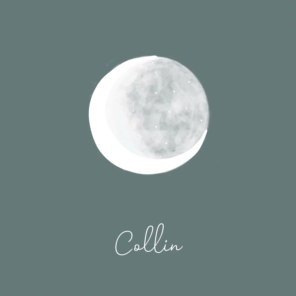 Vierkant geboortekaartje met ronde hoeken met een grote maan en sterrenhemel in regenboogfolie.