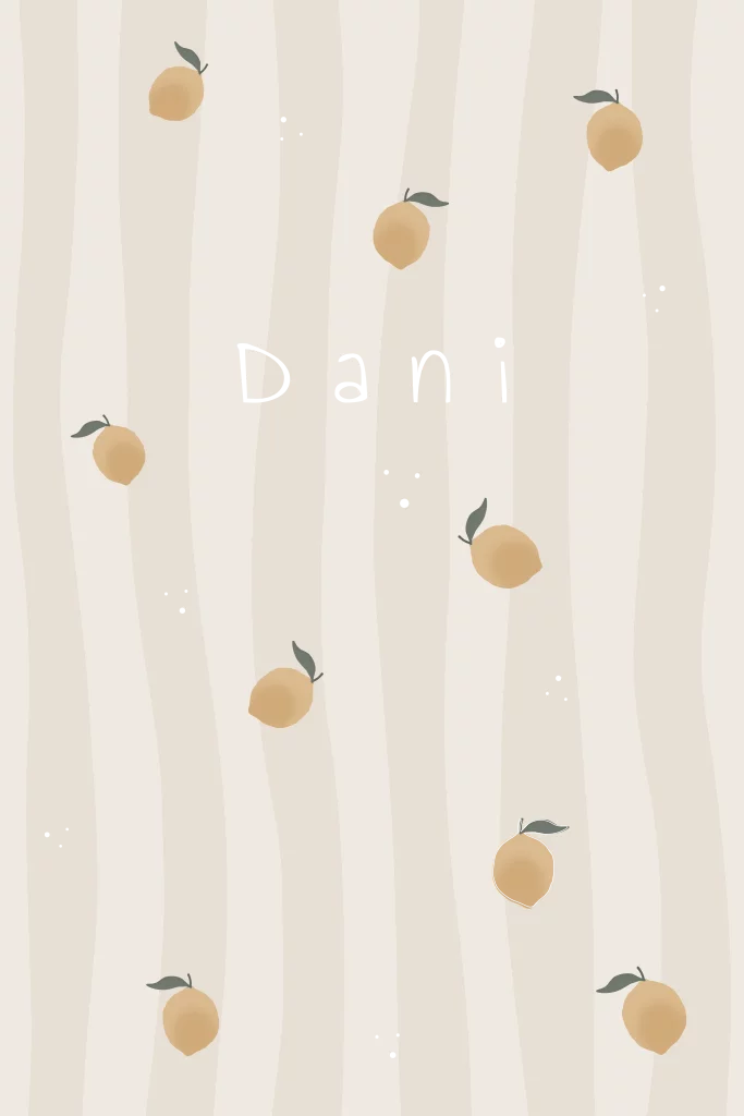 Lief beige geboortekaartje met aquarel citroenen en een speelse strepen achtergrond. De babynaam, subtiele stipjes en de omlijning van 1 van de citroentjes worden gedrukt in goudfolie.