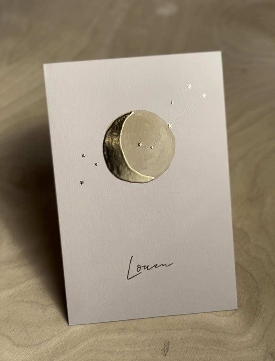 Geboortekaartje watercolor aquarel maan goudfolie sterrenbeeld beige