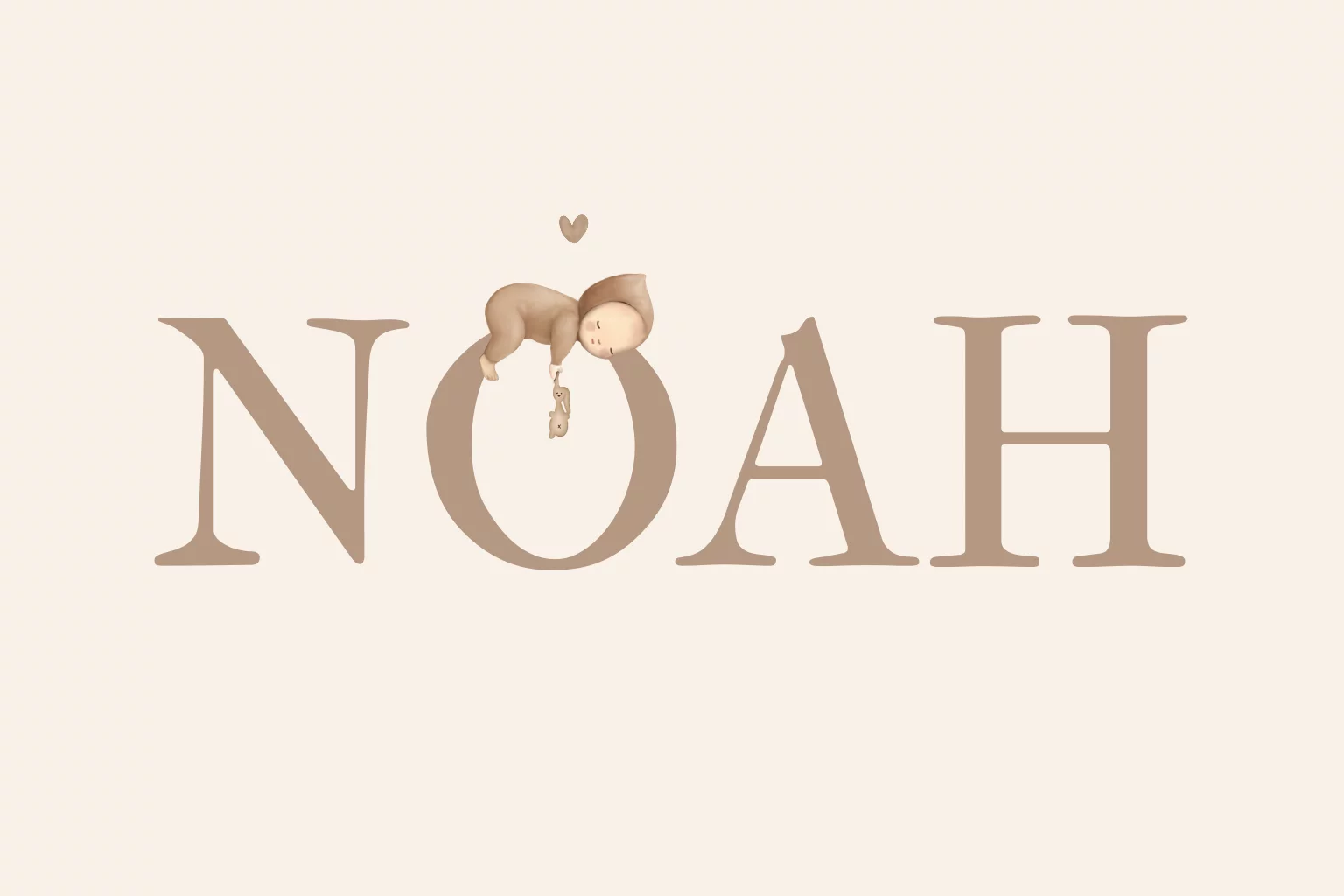 Letter geboortekaartje getekend aquarel knuffelkonijn hartje