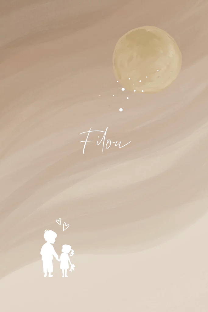 Lief geboortekaartje aquarel achtergrond zand maan folie zusje broer