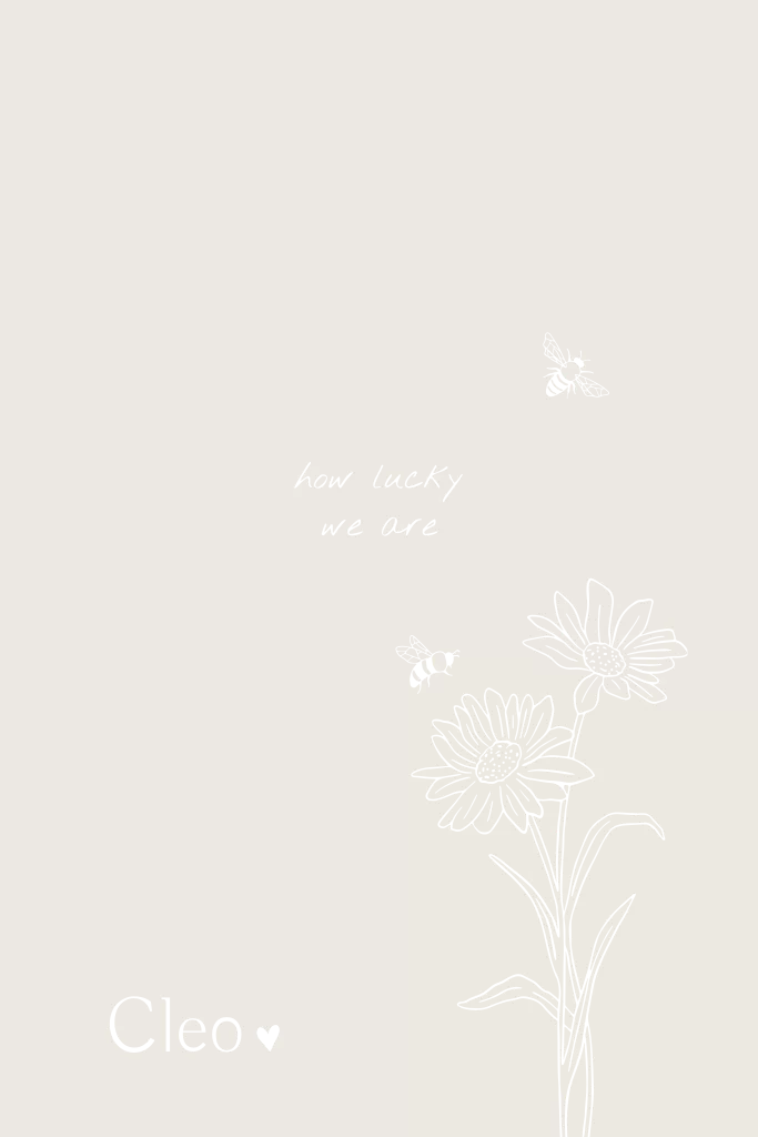 Lief minimalistisch geboortekaartje in beige met madelief en bijtjes. Het tekstje wordt gedrukt in goudfolie, maar je kunt gemakkelijk meerdere elementen in goudfolie aanzetten. Liever andere kleuren of een andere kleur folie? Pas het gemakkelijk aan in de editor.