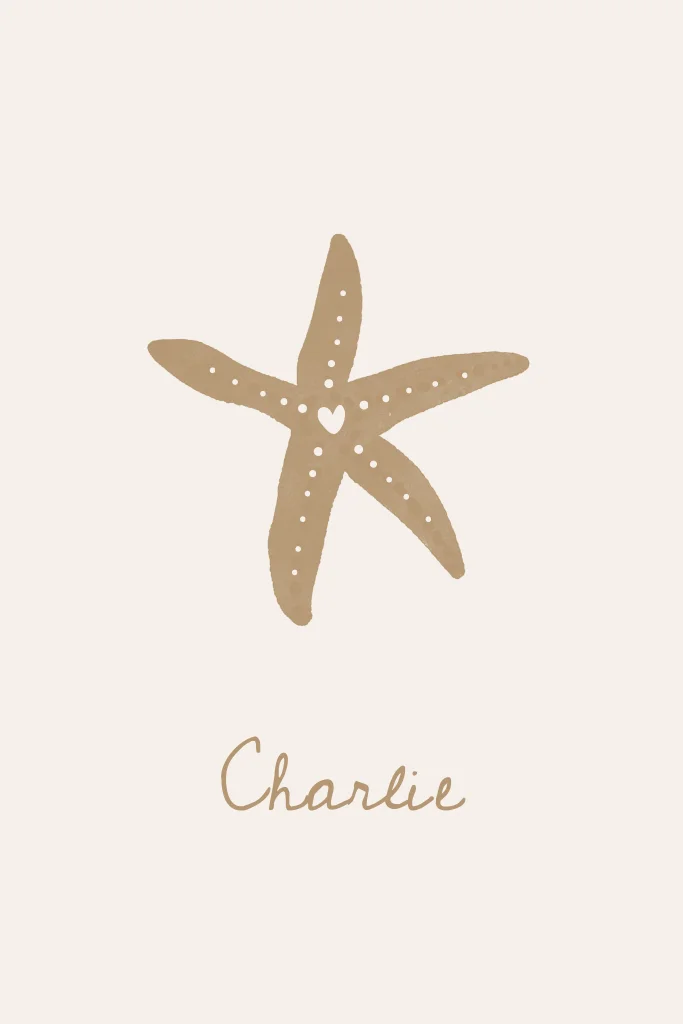 Neutraal beige geboortekaartje zeethema zeester