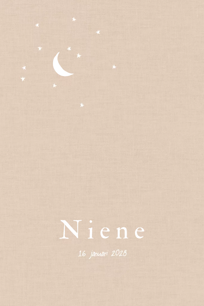 Neutraal geboortekaartje minimalistisch met maantje in beige